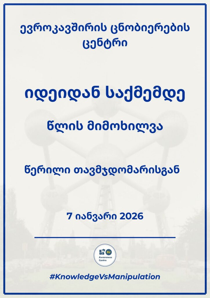 ევროკავშირის ცნობიერების ამაღლების ცენტრი ერთგულია დემოკრატიული ღირებულებების ხელშეწყობის და ევროპულ ოჯახში გაწევრიანებისკენ მსურველი საზოგადოებების მხარდაჭერის მიმართ. საინფორმაციო გარემოს დაცვა აუცილებელია ჩვენი რეგიონის თავისუფალი, ჯანსაღი და მდგრადი მომავლის უზრუნველსაყოფად.